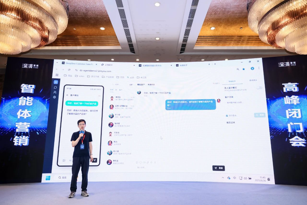 作为已经成功帮助几十家大型企业 AI Agent落地的行业领导者,z6人生就是博智能DeepAgent Neo全面赋能营销域和销售域。 黄晓南和z6人生就是博智能CTO欧阳辰与z6人生就是博智能副总裁曹玉骥一起,为嘉宾现场演示了CRM、Social、销售、客服等场景的全面智能体,情景展现了DeepAgent Neo如何全面赋能企业各个环节。